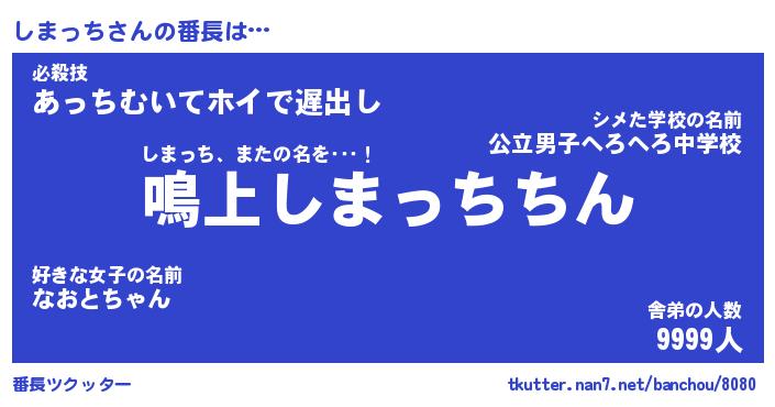 | 意味不明あだ名 | 『ペロリンしまっち』『永久保存しまっち』 |