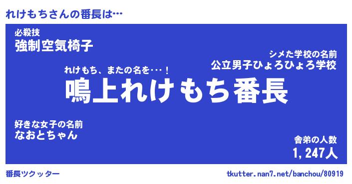 | 欧米人風あだ名 | 『マイケルれけもち』『ウサインれけもち』 |