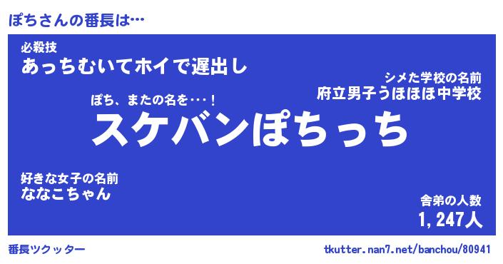 | 意味不明あだ名 | 『ペロリンぽち』『ぽちフォーエバー』 |