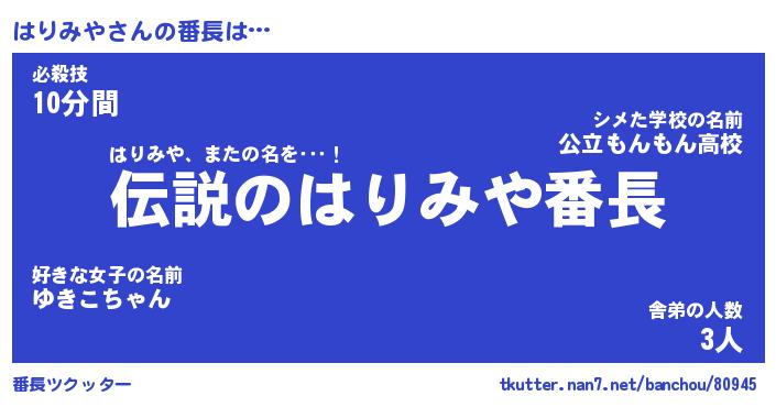 | 意味不明あだ名 | 『ペロリンはりみや』『永久保存はりみや』 |