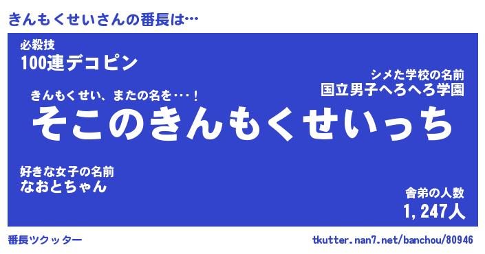 | 2回繰り返すあだ名 | 『きんきん』『ききんん』『あんあん』 |