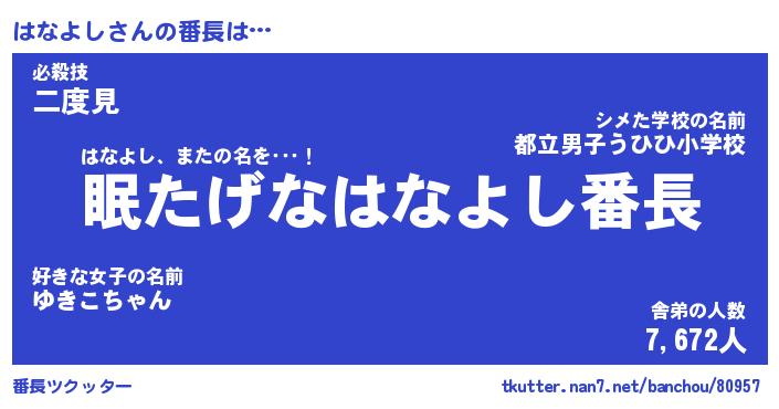 | 2回繰り返すあだ名 | 『はなはな』『ははなな』『ぬるぬる』 |