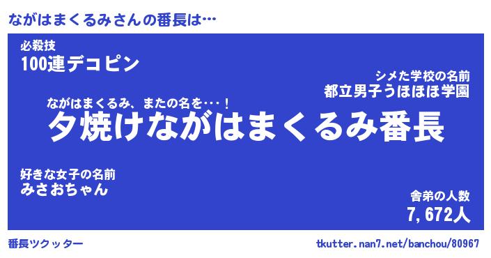 | ヒーロー風カッコイイあだ名 | 『スーパーナガハマクルミ』 |