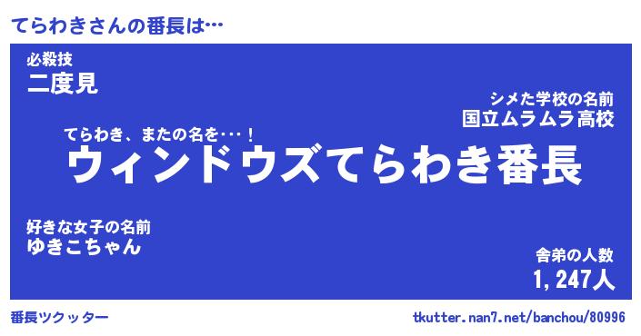 | 伝説のあだ名 | 『伝説のスナイパーてらわき』 |