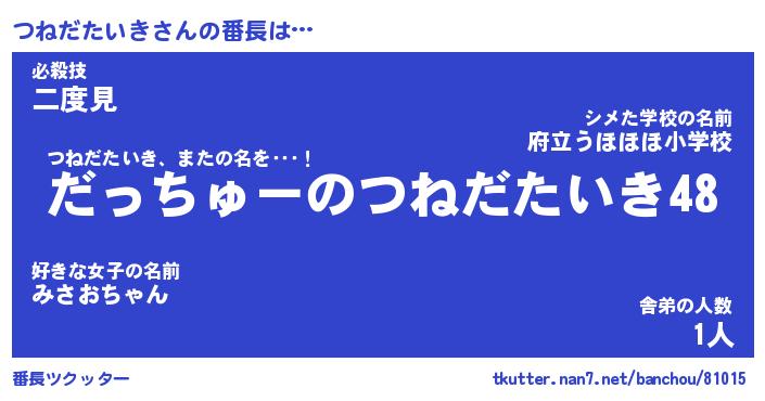| 伝説のあだ名 | 『伝説のスナイパーつねだたいき』 |