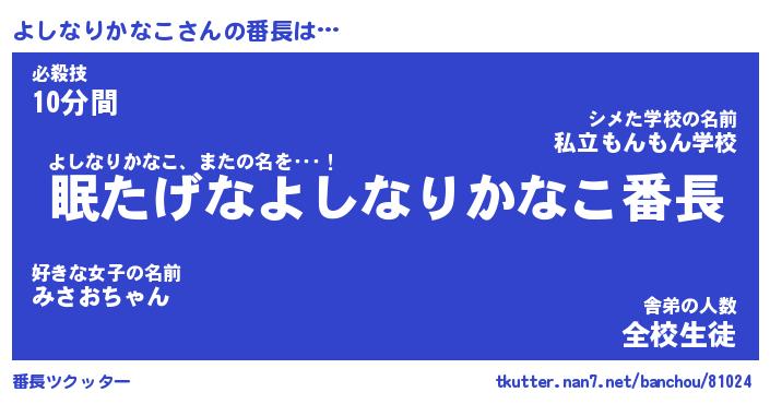 | 肩書あだ名 | 『よしなりかなこ店長』 |