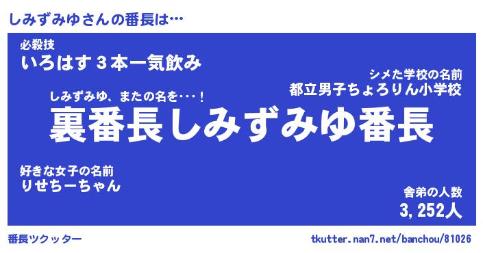 | 伝説のあだ名 | 『不死鳥のスナイパーしみずみゆ』 |