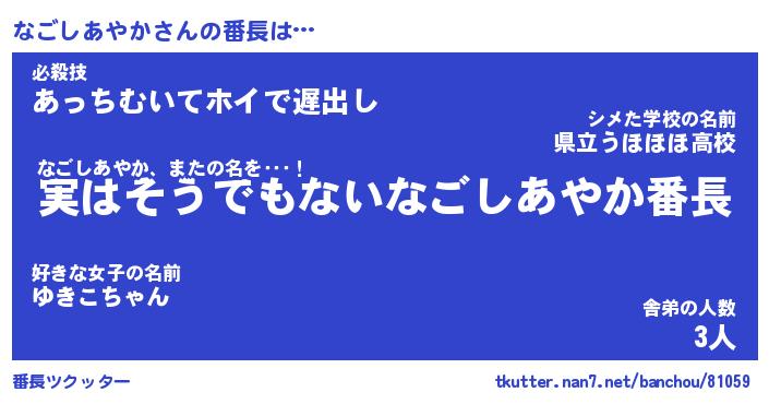 | 肩書あだ名 | 『なごしあやか御曹司』 |