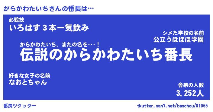 | 恥ずかしいあだ名 | 『プリティーからかわたいち』『からちん』 |