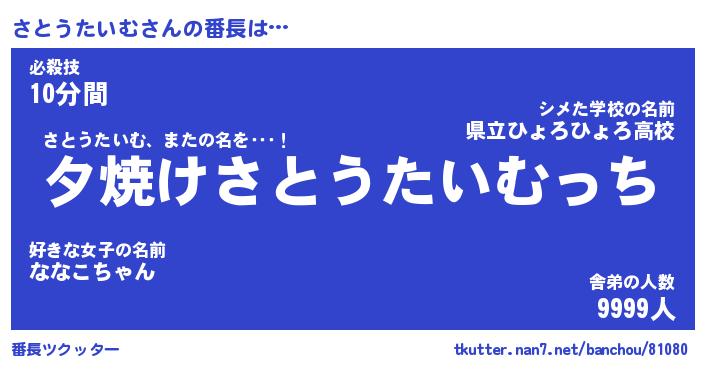 | 肩書あだ名 | 『さとうたいむ社長』『さとうたいむ班長』 |