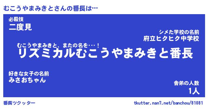 | 女子向けラノベタイトル風あだ名 | 『(仮)むこうやまみきとのやんごとなき事情』 |