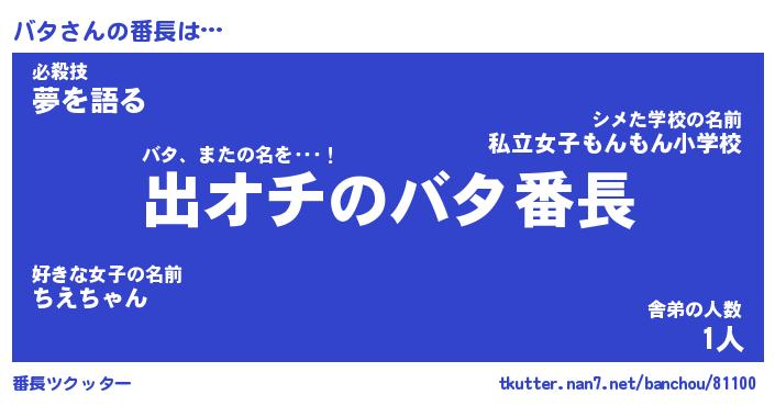 | ヒーロー風カッコイイあだ名 | 『スーパーバタ』『ウルトラバタマン』 |