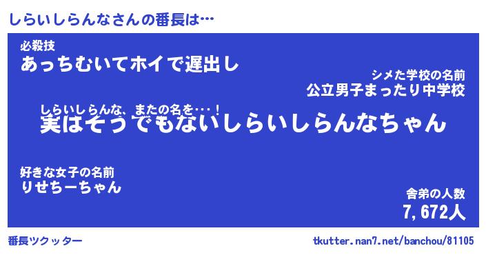 | 2回繰り返すあだ名 | 『しらしら』『ししらら』『ぬるぬる』 |