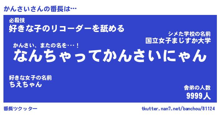 | ポケモン風あだ名 | 『カンチュウ』『カンサダネ』 |