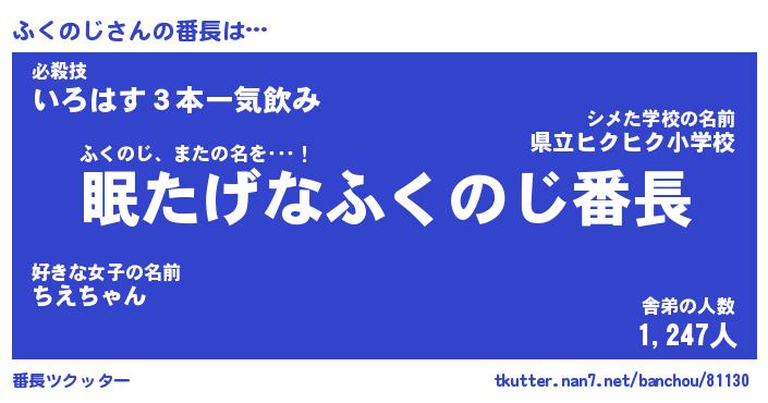 | 肩書あだ名 | 『ふくのじ御曹司』『ふくのじ国家主席』 |