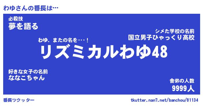 | ヘコむあだ名 | 『わゆっふぃ~』『つくし』『わゆお』 |