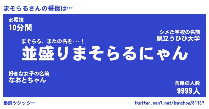 | 意味不明あだ名 | 『ペロリンまそらる』『永久保存まそらる』 |