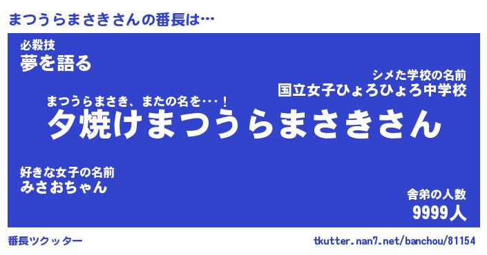 | 伝説のあだ名 | 『封印されしスナイパーまつうらまさき』 |