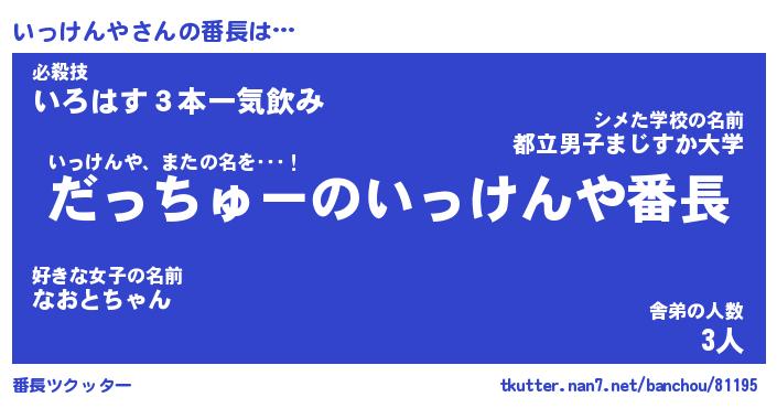| ポケモン風あだ名 | 『イッチュウ』『イッケダネ』 |