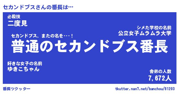 | ヒーロー風カッコイイあだ名 | 『スーパーセカンドブス』『炎刃騎士セカ』 |