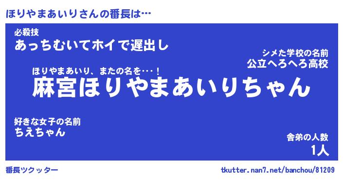 | 恥ずかしいあだ名 | 『プリティーほりやまあいり』『ほりちん』 |