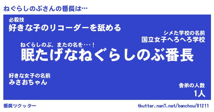 | 肩書あだ名 | 『ねぐらしのぶCEO』『ねぐらしのぶ大統領』 |