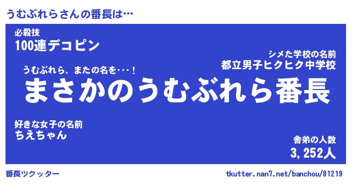 | 肩書あだ名 | 『うむぶれら社長』『うむぶれら総理大臣』 |