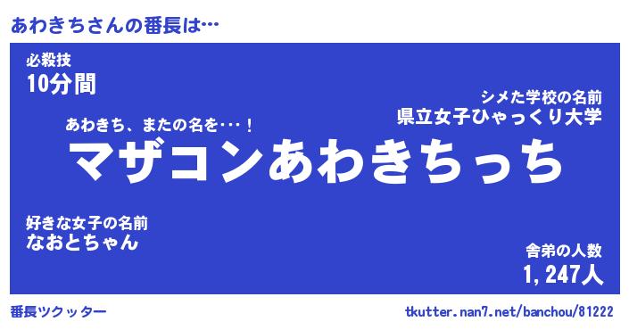 | 伝説のあだ名 | 『封印されしスナイパーあわきち』 |