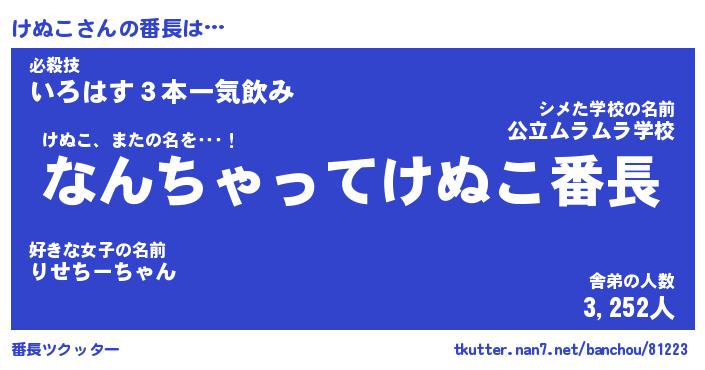 | 意味不明あだ名 | 『ペロリンけぬこ』『けぬこフォーエバー』 |