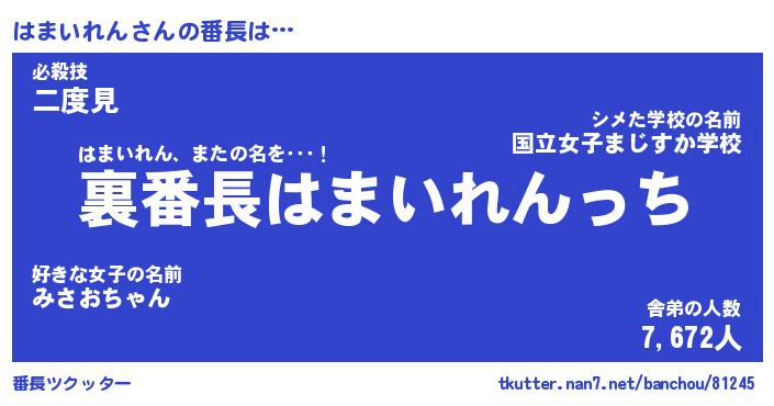 | 2回繰り返すあだ名 | 『はまはま』『ははまま』『ねちねち』 |