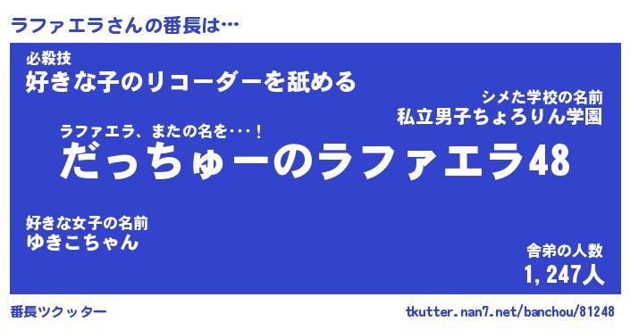 | ポケモン風あだ名 | 『ラフチュウ』『ラファダネ』 |