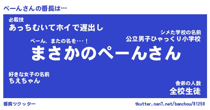 | 意味不明あだ名 | 『ペロリンぺーん』『ぺーんフォーエバー』 |