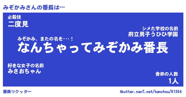 | ヘコむあだ名 | 『みぞにー』『酢こんぶ』『みぞっ子』 |