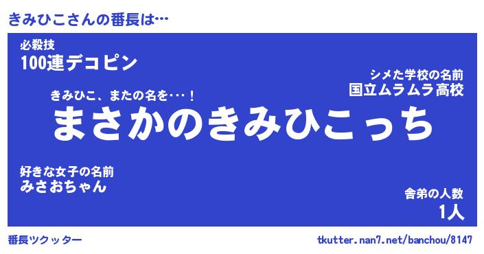 | 意味不明あだ名 | 『ペロリンきみひこ』『永久保存きみひこ』 |
