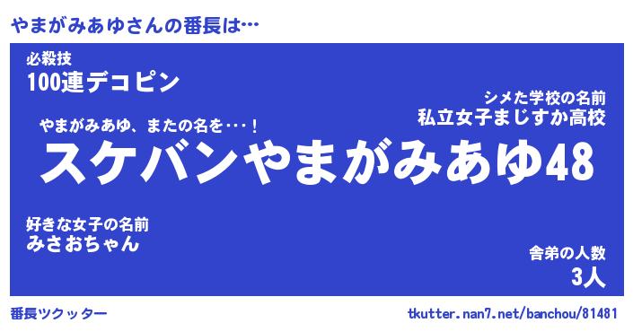 | 恥ずかしいあだ名 | 『プリティーやまがみあゆ』『やまっちょ』 |