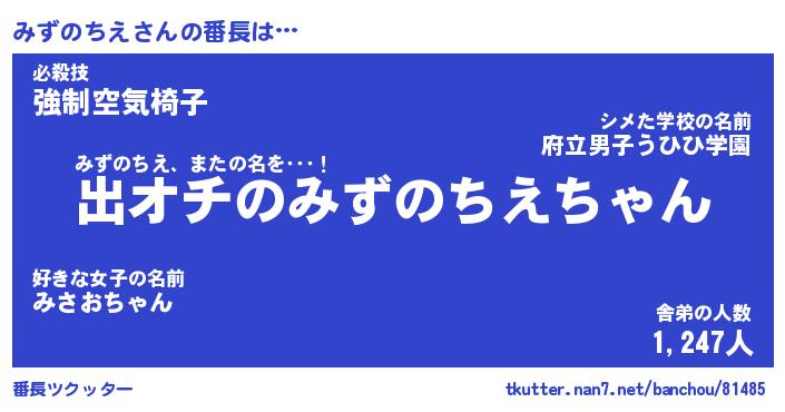 | 伝説のあだ名 | 『伝説のスナイパーみずのちえ』 |