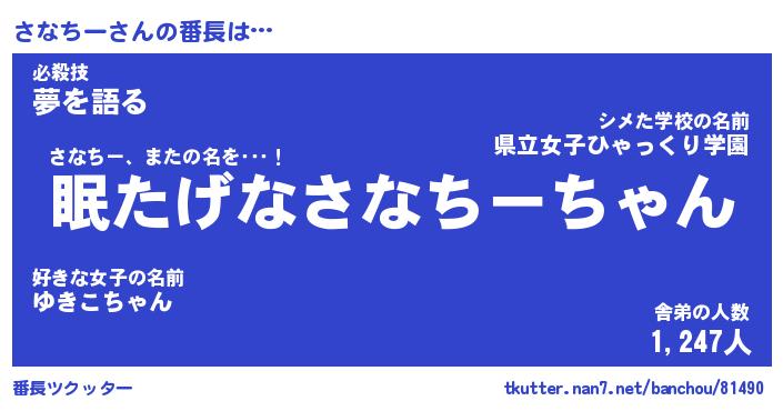 | 伝説のあだ名 | 『封印されし竜騎士さなちー』 |
