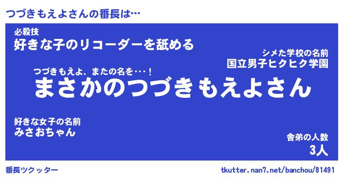 | ヒーロー風カッコイイあだ名 | 『スーパーツヅキモエヨ』『暗黒騎士ツヅ』 |
