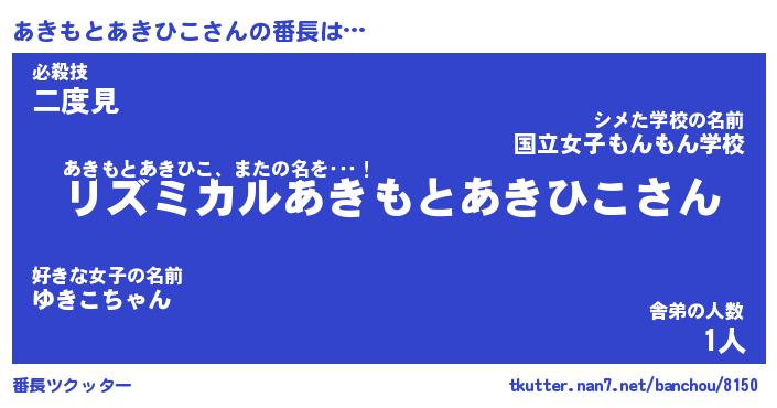 | 肩書あだ名 | 『あきもとあきひこ店長』 |