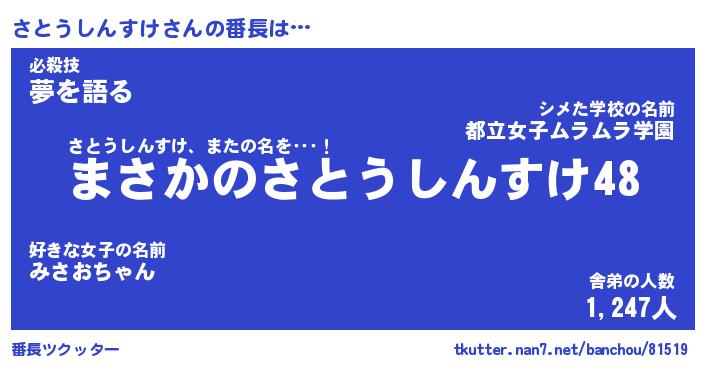 | 伝説のあだ名 | 『伝説のスナイパーさとうしんすけ』 |