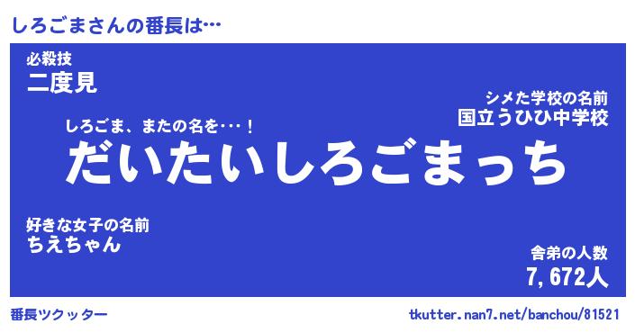 | ヒーロー風カッコイイあだ名 | 『スーパーシロゴマ』『炎刃騎士シロ』 |