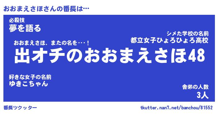 | 恥ずかしいあだ名 | 『プリティーおおまえさほ』『おおっちょ』 |