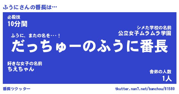 | ヒーロー風カッコイイあだ名 | 『スーパーフウニ』『ウルトラふうにマン』 |
