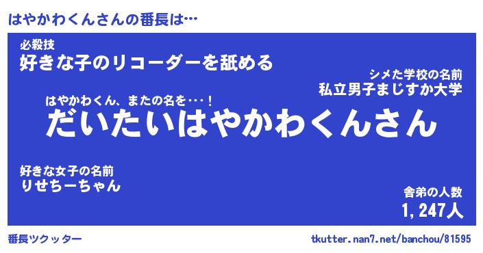 | ツイッター | はやかわくんさんのツイッターID『masyumaro_nyan』 |