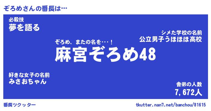 | ヘコむあだ名 | 『ぞろもー』『なまこ酢』『ぞろっ子』 |