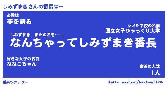 | ファンタジー風あだ名 | 『シミフェル』『エターナルシミズマキー』 |