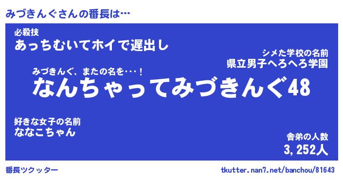 | ヘコむあだ名 | 『みづもー』『つくし』『みづっぺ』 |