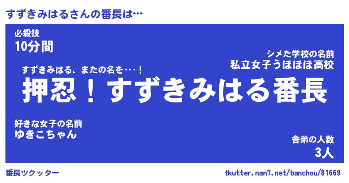 | ヒーロー風カッコイイあだ名 | 『スーパースズキミハル』『魔戒騎士スズ』 |