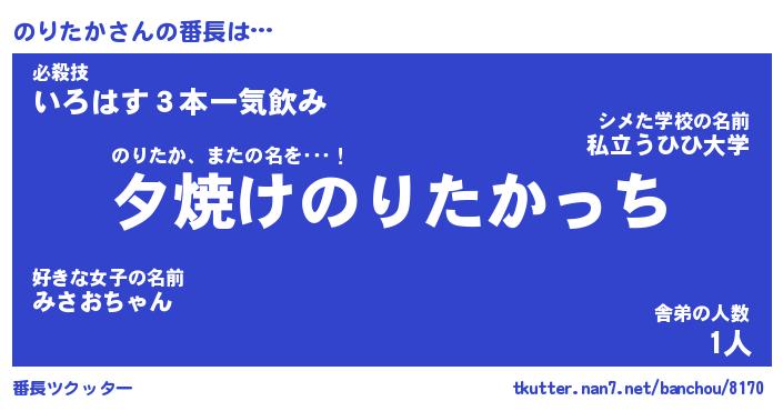 | 意味不明あだ名 | 『ペロリンのりたか』『永久保存のりたか』 |