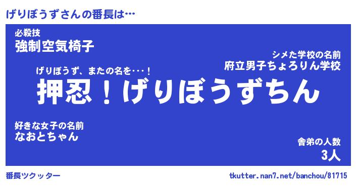 | ヒーロー風カッコイイあだ名 | 『スーパーゲリボウズ』『魔戒騎士ゲリ』 |